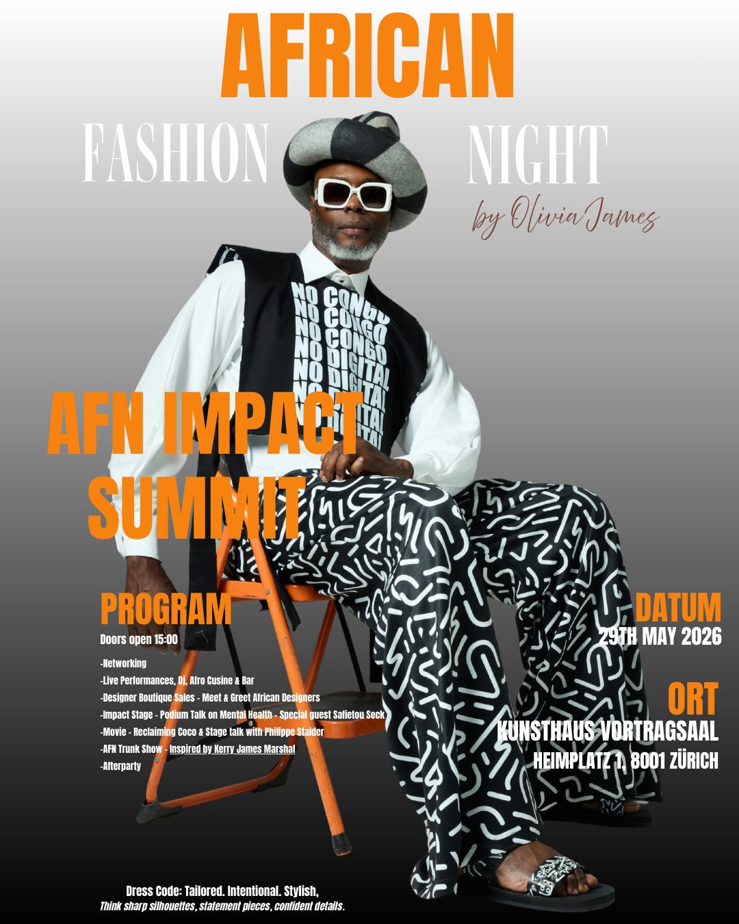 Die führende Plattform für afrikanische Luxusmode und Business Networking. African Fashion Night ist die massgebliche Schweizer Plattform für afrikanische Designkultur und kreative Exzellenz im renommierten Kunsthaus Zürich, ein kuratierter Raum, in dem zeitgenössische afrikanische Mode auf höchstem Niveau präsentiert und strategisch positioniert wird. Mit internationaler Perspektive und unternehmerischer Präzision verankert AFN afrikanische Kreativität nachhaltig im europäischen Markt und steht für eine selbstbewusste, zukunftsorientierte Luxusindustrie mit globalem Anspruch.